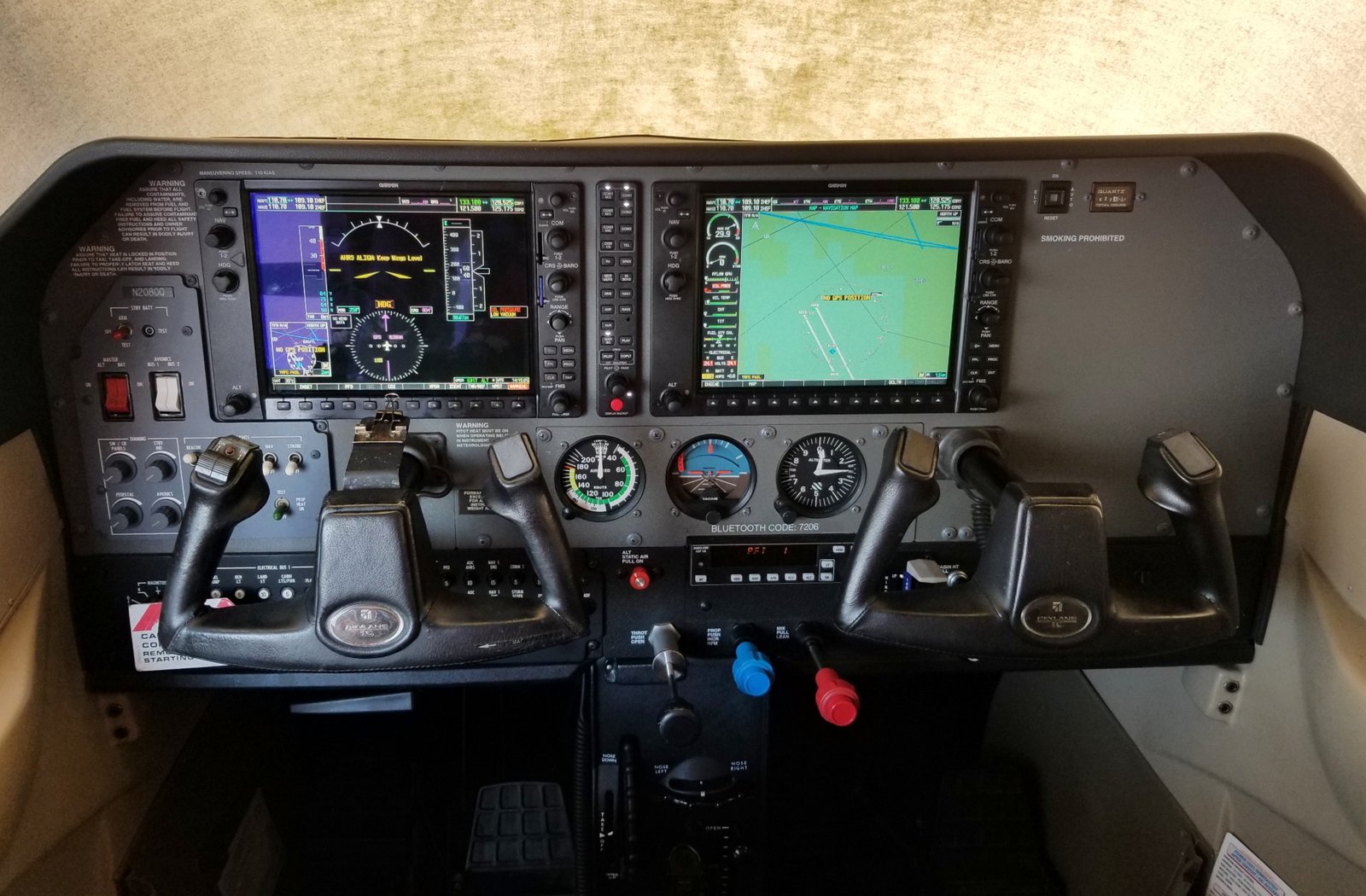 N2080Q is another one of the fastest, highest-flying and best-equipped rental aircraft in the D.C. area. This 2005 Cessna 182 matches a turbo-charged 235 horsepower engine to a 3-bladed, heated prop to give you full power and a true airspeed of over 160 knots into the flight levels. It is equipped with a 4-place oxygen system and safety airbags at each seat. The glass cockpit G-1000 system provides state-of-the-art avionics, flight planning and information display. The KAP 140 Autopilot system makes hands off cruising a dream. Additionally, the XM weather system and on-board stormscope provide the full range of real-time weather products while the Traffic and Terrain Awareness System display potential hazards overlayed right on your course. Your choice of all XM radio channels can be piped right into the stereo intercom system.